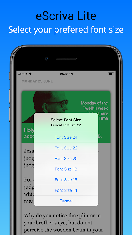 Over 80,000 people are diving deeper into the daily gospel readings from the Catholic Mass with eScrivalite. Let St Josemaria Escriva guide you to a fuller understanding of the Gospel as you meditate on his words. Users have said using the App has made meditation easier. Why not make it a part of your daily prayer routine?