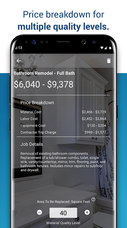 اپنے موبائل آلہ سے مرمت اور دوبارہ بنانے والے منصوبوں کے اخراجات کا تخمینہ لگائیں۔