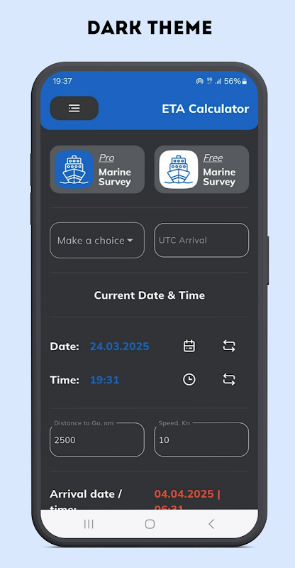 ETA یا مطلوبہ رفتار کا حساب لگانے کے لیے آف لائن ٹول۔ سمندری مسافروں کے لیے ڈیزائن کیا گیا ہے۔