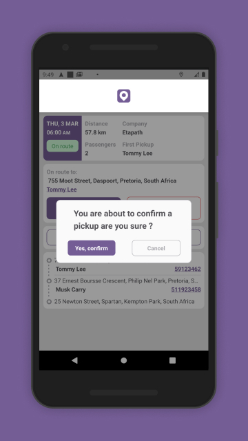 ایک ڈرائیور کے طور پر، آپ سے توقع کی جائے گی کہ Etapath Driver Application استعمال کریں جو آپ کو روزانہ کی بنیاد پر آپ کو تفویض کردہ دوروں تک رسائی فراہم کرتی ہے۔