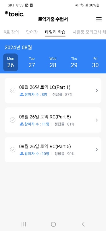 ایک موبائل لرننگ پلیٹ فارم خصوصی طور پر ETS TOEIC L&R S&W امتحانی کتابوں کے لیے جو TOEIC آرگنائزر اور پچھلے سوالات کے خصوصی پبلشر YBM کے ذریعے تخلیق کیا گیا ہے!