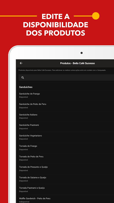 restaurant ریستوراں کی مصنوعات کی دستیابی کو تبدیل کریں