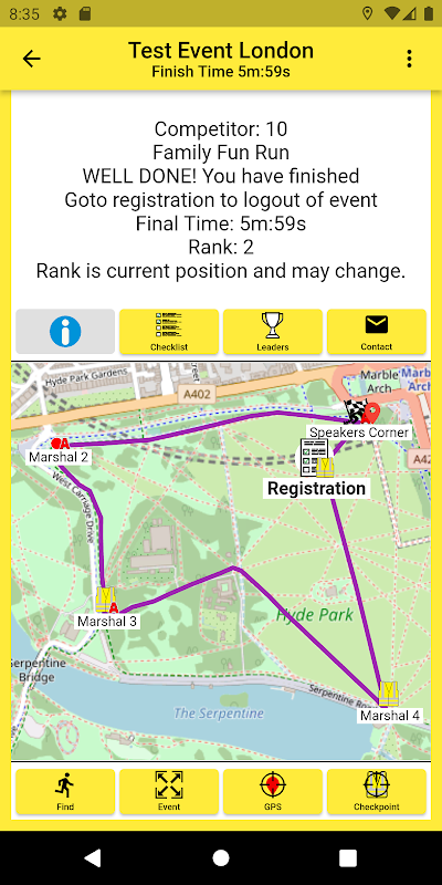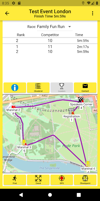 If you are an event organiser or marshal please use the Event Marshal app to marshal, administer or create events.