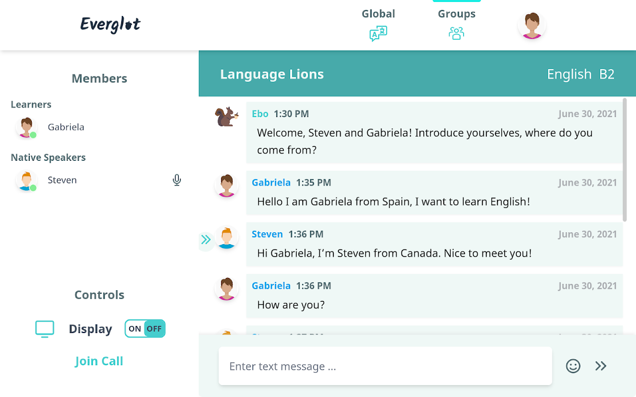 · you are sorted into a study group composed of 4 learners and 2 native speakers, based on your target language and skill level