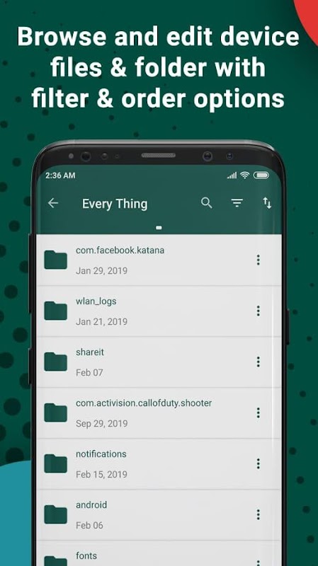 Every Thing will help you to find any files easily, you can easily manage your files and folders on your device, Full-text instant search over your Documents/Files, Contacts, and Apps - An efficient powerful search engine on your Android.
