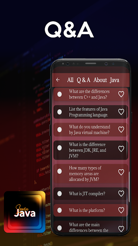 Everything about Java with an amazing collection of Java (code examples) with comments, questions and multiple answers, all your programming learning needs are bundled into one app to learn to code