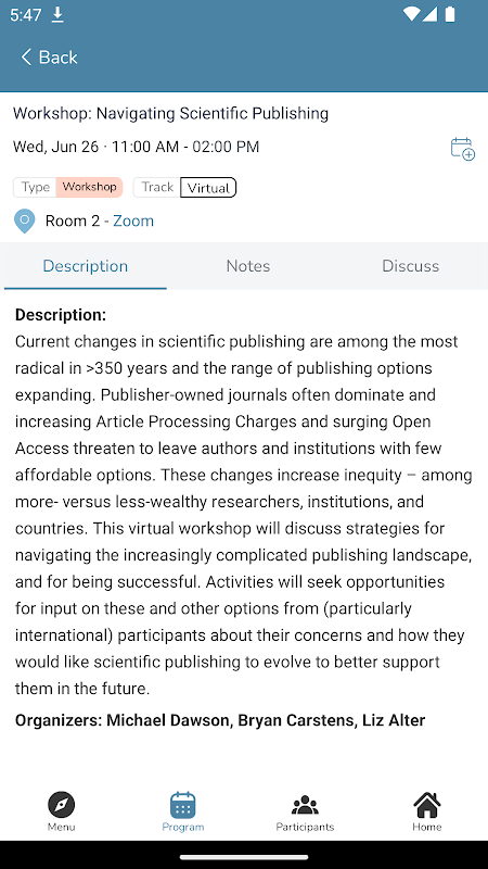 1. ایپ آپ کو سائن ان کرنے اور پسندیدہ سیشنز یا پریزنٹیشنز کی اجازت دے گی جس سے آپ اپنی مرضی کے مطابق سفر کا پروگرام بنا سکیں گے۔