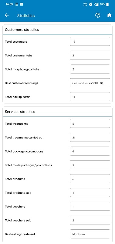 ○ تفصیلی اعدادوشمار گاہکوں، علاج، سپلائرز، مجموعہ اور بہت کچھ
