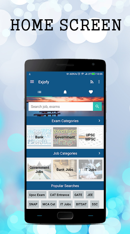 On the home screen popular exams and jobs are listed for user convenience