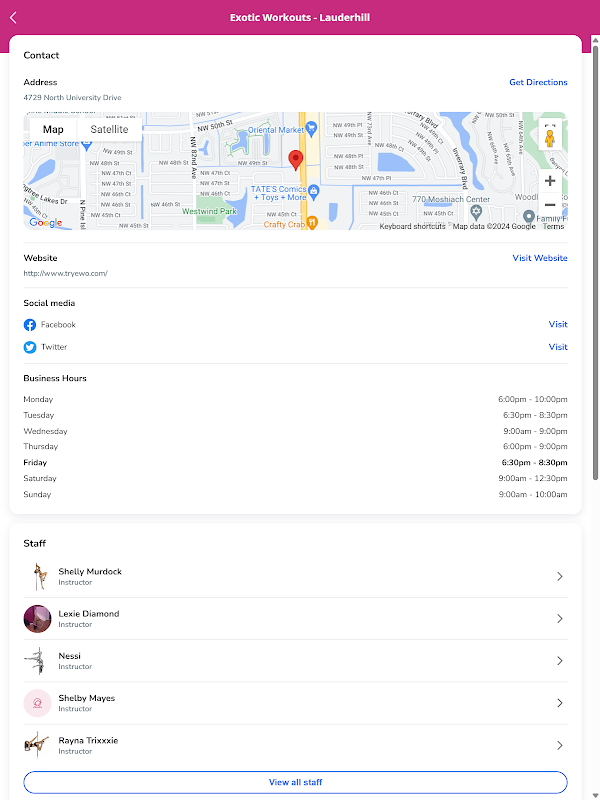 ہم 2010 سے فٹ رہنے کے دوران خواتین کی تفریح اور سیکسی ہونے میں مدد کر رہے ہیں۔ اب ہمارے پاس آپ کے لیے جنوبی فلوریڈا کے 3 دلچسپ اسٹوڈیو مقامات ہیں جن میں سے انتخاب کیا جا سکتا ہے - پیمبروک پائنز، سن رائز اور ویسٹ پام بیچ۔ آج ہی شامل ہوں اور تجربہ کریں کہ بہت ساری خواتین کس کے بارے میں بات کر رہی ہیں!