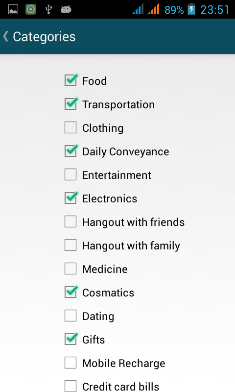 User can set budgets or limit of every expense categories.