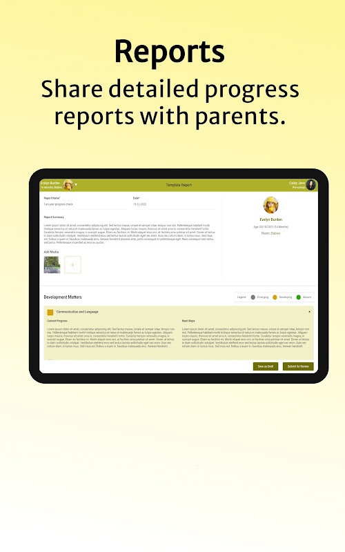 چھوٹے بچوں کی ابتدائی نشوونما کے سنگ میل کے لیے وہاں ہونا نرسری میں کام کرنے کی سب سے بڑی خوشیوں میں سے ایک ہے۔ ہمارے استعمال میں آسان سیکھنے کے سفر، ڈائری اندراجات اور مزید کے ساتھ کبھی بھی ایک لمحہ ضائع نہ کریں۔