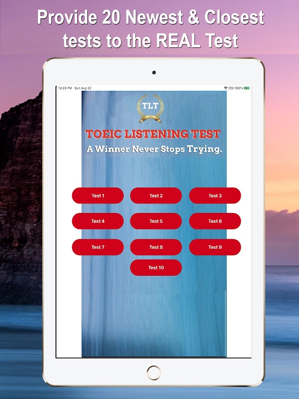 "TOEFL اور TOEIC ریاستہائے متحدہ اور دیگر ممالک میں ایجوکیشنل ٹیسٹنگ سروس (ETS) کے رجسٹرڈ ٹریڈ مارکس ہیں۔ یہ ایپ ETS کے ذریعے توثیق یا منظور شدہ نہیں ہے۔