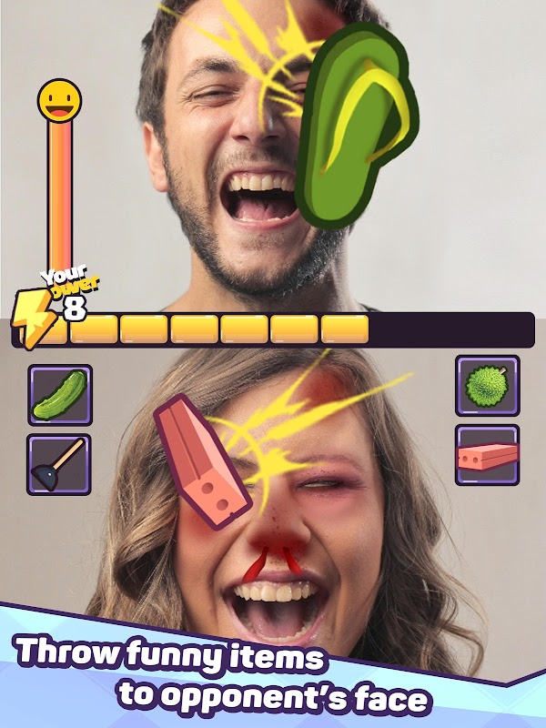 FaceFight Challenge! allows you to create hilarious moments with friends by joining real-time PVP matching with millions of people. It uses Mobile AR Graphics and your mobile phone camera to map your face. Apply hilarious face filters and throw epic weapons at the opponent's face. The faster you throw, the higher your score!