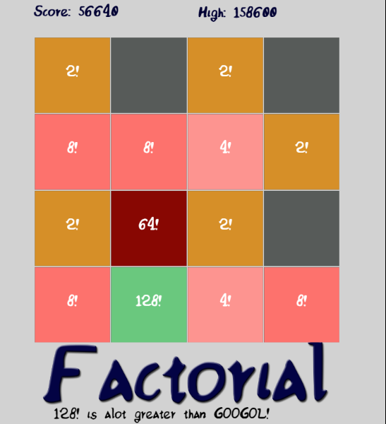 Go .. play facts and factorials numbers game (2048 clone)