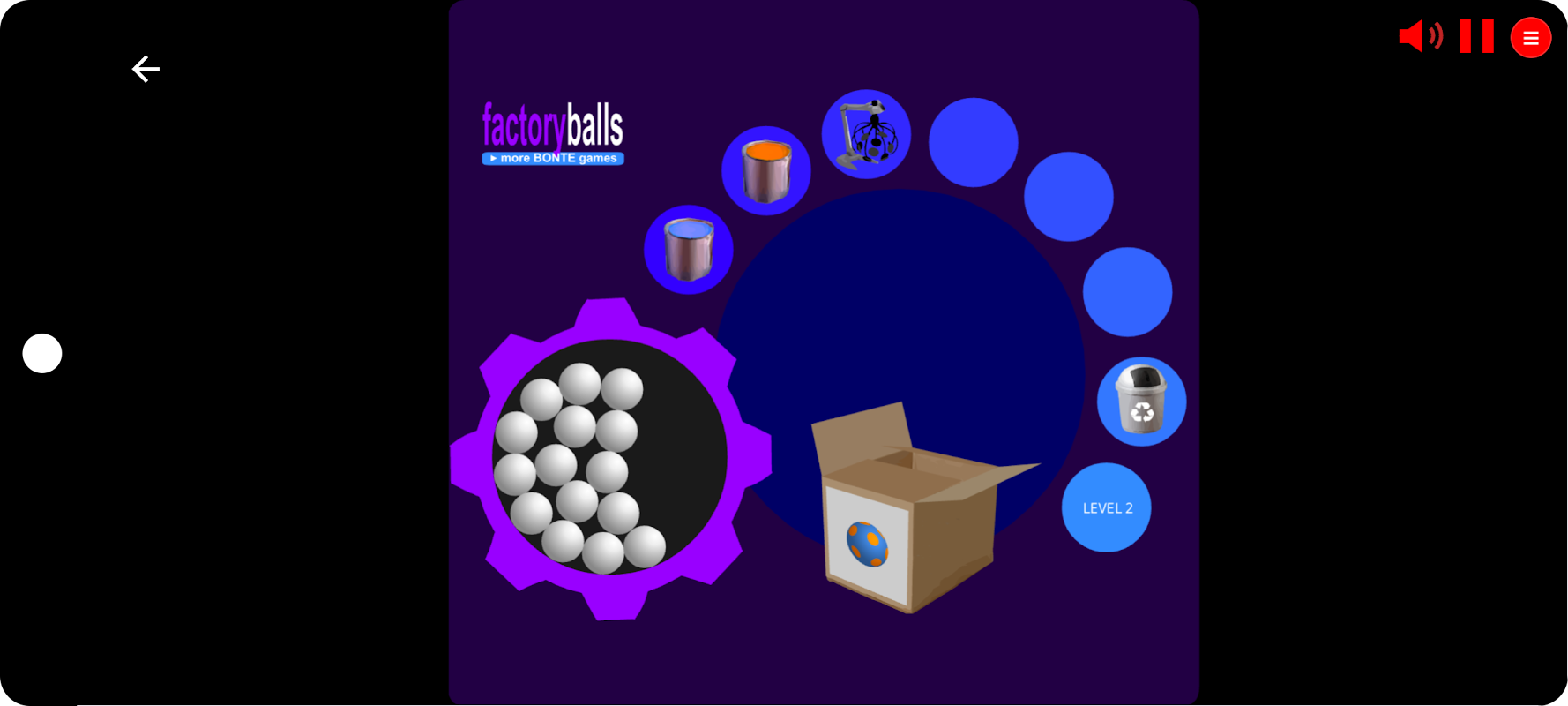 فیکٹری بالز بارٹ بونٹ کا ایک دلکش پہیلی کھیل ہے، جہاں آپ کا مقصد ہر گیند کو باکس پر موجود تصویر کے ساتھ ملانا ہے۔ آپ گیندوں میں سے ایک کو اٹھائیں گے اور مطلوبہ ڈیزائن کو دوبارہ بنانے کے لیے مختلف ٹولز استعمال کریں گے۔ ایک بار جب آپ کی گیند تصویر سے ملتی ہے، تو آپ اگلے چیلنج پر جائیں گے۔