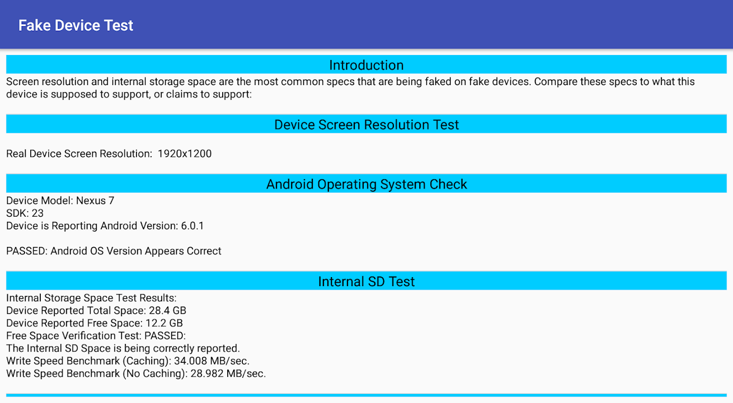تلاش کی اصطلاحات: جعلی ڈیوائس ٹیسٹ، ڈیوائس ٹیسٹ، ہارڈویئر ٹیسٹ، جعلی فون کا پتہ لگائیں، جعلی ٹیبلٹ کی شناخت کریں، جعلی ہارڈویئر، ترمیم شدہ فرم ویئر، فلیٹ شدہ چشمی، SD کارڈ ٹیسٹ، جعلی SD کارڈ، دھوکہ دہی سے بچاؤ، ڈیوائس کی صداقت، ہارڈ ویئر کی تصدیق کریں۔