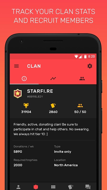• Clan stats and recruiting