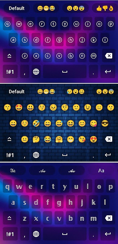 ایموجیز فونٹ کی بورڈ کی خصوصیات کے ساتھ کی بورڈ تھیمز: