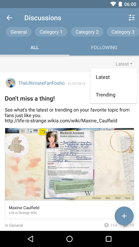 - Browsing: categories and articles created by Life is Strange's community and rank them in trending order