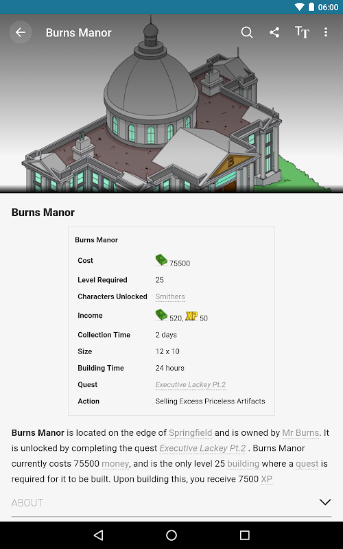 FANDOM's app for The Simpsons: Tapped Out - created by fans, for fans. Our Simpsons Tapped Out app always features highly-accurate, real-time information from FANDOM's passionate community of fans. You can expect to see hundreds of pages of content created by fans just like you. Find articles on buildings, currency, characters, community, costumes, currency, decorations, events, free items, and much more. No other app offers this combination of companion features that allow you to: