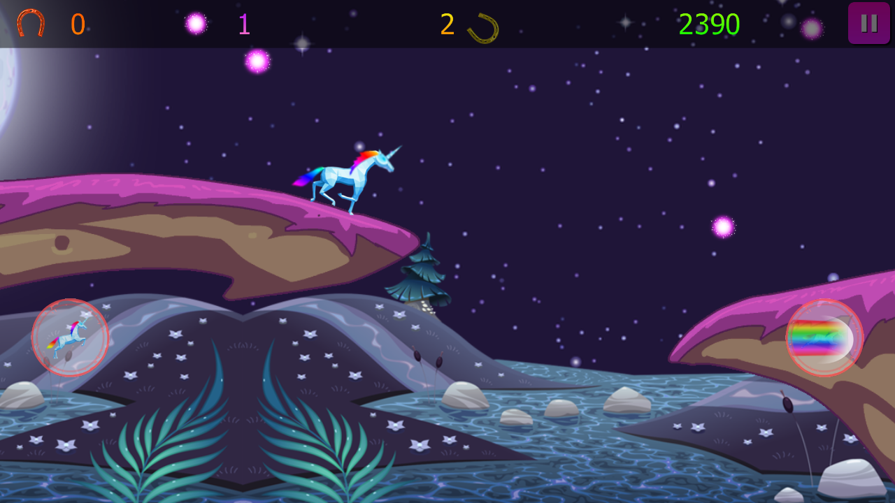 Control the unicorn by jumping to avoid obstacles and collect coins and power-ups. Collect valuable power-ups and get special powers to crush through obstacles, and achieve your highest score.