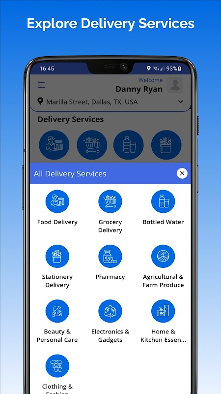 اپنے پسندیدہ ریستوراں سے کھانے کا آرڈر دیں یا گروسری آپ کی دہلیز پر پہنچائیں۔ قریبی دکانداروں کو براؤز کریں، اپنے آرڈر کو حسب ضرورت بنائیں، اور حقیقی وقت میں اپنی ڈیلیوری کو ٹریک کریں۔