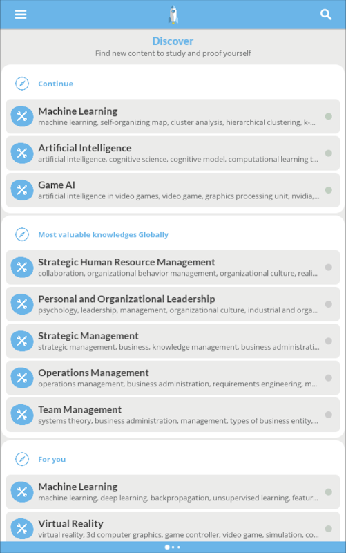 - Start building your knowledge base. There are many free topics available. You can buy coins to open nanodegrees which cover groups of closely related knowledges with their core topics.