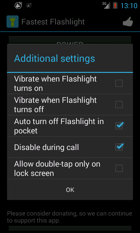 Double-click the power button to turn Flashlight on, and it is easier to turn it off. Use this app to turn on your device's Flashlight as fast as possible - even without unlocking your phone. Just double-click your power button and the light goes on. When you’re finish, just put the phone in your pocket, and it'll automatically go off.