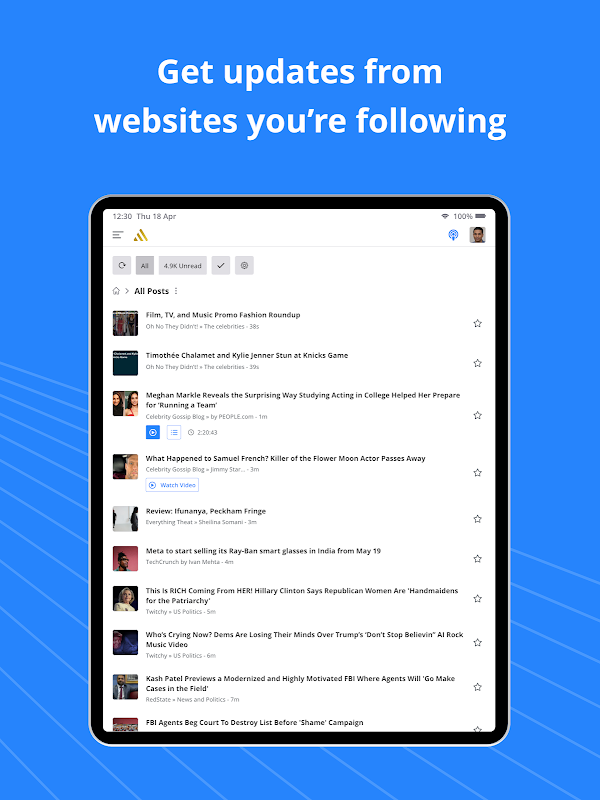 آپ کو اپ ڈیٹ رکھنے کے لیے Feedspot آپ کی پسندیدہ سائٹوں سے تازہ مواد فراہم کرتا ہے۔