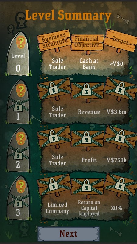 As you prove your accounting and finance literacy and your business successfully meets its financial objectives, you progress through to new levels unlocking new business features, new financial data and new challenges.