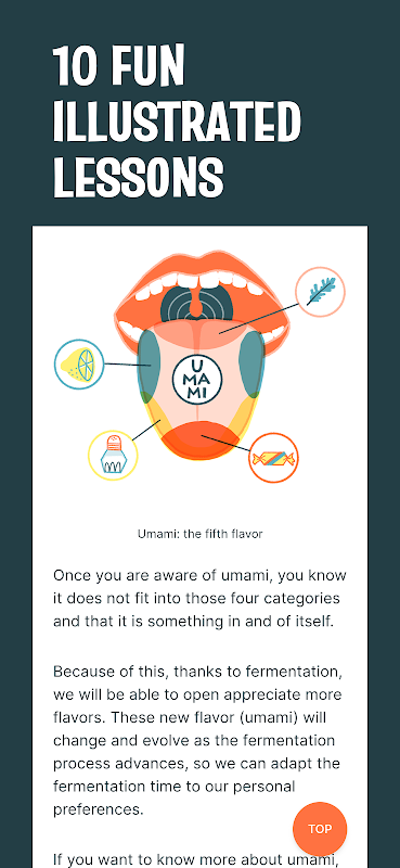 Discover the art of fermentation and pickling with FermentApp! Our comprehensive app is designed to teach you everything you need to know about veggie lactofermentation from scratch and at your own pace. With 10 beautifully illustrated lessons and more than two hours of rigorous content, you'll learn all the theory behind the fermentation process. You can also listen to the lessons while doing other things, thanks to the audio format.
