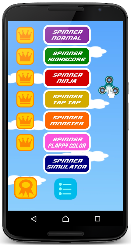 Fidget spinner is the latest novelty, the toy that is fashionable, make it spin and spin like a bottle or wheel, play and get the highest score. If you can not buy yourself a real spinner, then you can replace it with a virtual spinner in your smartphone. What is Hand fidget Spinner? the original name Fidget Spinner, is a realistic simulator for fingers, has the effect of self-regulation, reduces anxiety, stress and get relax, the pleasure it gives is unlimited. Increases tactile sensitivity and develops small motor skills of the fingers, which in turn helps to concentrate attention, develop intellectual abilities and strengthen memory. The game is simple and addictive. Press to rotate and swipe and lift your finger to stop. Choose your favorite spinner, take the device in one hand, and another quickly rotate the fidget spinner. The hand spinner fidget toy perfectly removes stress. Thanks to good physics, the movement of the spinners' spins looks smooth and real. At a high speed spinning the hand spinner a beautiful 3d rotation effect. Play and have fun with the beautiful spinning spinner. All Spinners, differ in size and color, you get lifestyle and freedom to own your own emotions. A hand spinner can be twisted in your hand, twist in your pocket, in the metro, in a traffic jam, in class, waiting the bus. The real hand spinner will be the way to any boring, an exciting situation. Choose your favorite hand spinner and twist as quickly as possible. The game perfectly worked out the physics of rotation, perfectly repeats the work of the real spinner on the bearing. According to some experts, even people who are not too nervous usually take pleasure in turning the Fidget spinner in their hands. So it can be used without a special purpose, so, for the sake of pleasure. And the children will be even more happy with this unusual toy. Which, plus everything, perfectly develops the motor skills of the fingers. Fidget hand spinner will raise the mood, increase concentration, charge positive emotions and relieve fatigue. Choose any spinners, and start twisting. You will see a beautiful effect, which changes due to the different rotation speed. Hand spinner is a new type of anti-stress toy.