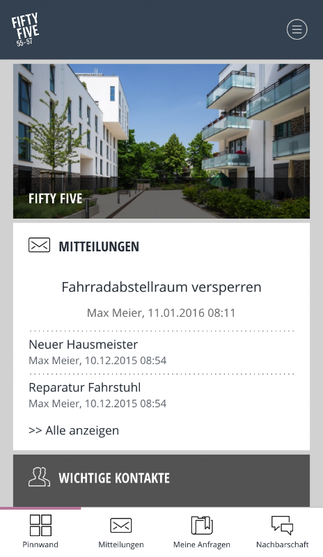 پچپن پانچوں افراد کو آپس میں جوڑتا ہے جس کو ایک دوسرے سے باقاعدگی سے بات کرنی ہوتی ہے تاکہ رہائش اور کرایے کا کام آسانی سے ہو۔ رہائشیوں ، اپارٹمنٹس کے مالکان ، نگراں کارکنان اور منتظمین۔