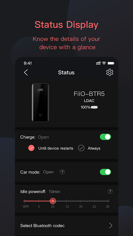 نوٹ: یہ ایپ فی الحال FiiO Q5, Q5s, BTR3, BTR3K, BTR5, EH3 NC, LC-BT2 کے ساتھ جڑنے کی حمایت کرتی ہے۔ نئے ماڈلز کے دستیاب ہونے کے بعد ان کے لیے تعاون شامل کر دیا جائے گا۔