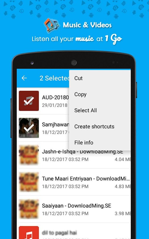 File Manager helps you handle all your all files whether they are stored on your device storage or SD card. View Images, Videos, Music, Apps, Doc, Compressed Files, Downloads, Internal & External Storage details on a single screen.