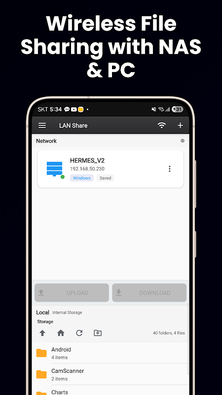 بلٹ ان Wi-Fi فائل سرور کے ذریعے فائلوں کو وائرلیس منتقل کریں — کسی بھی براؤزر سے صرف QR کوڈ اسکین کریں۔ اپنے مقامی نیٹ ورک پر مشترکہ فولڈرز کو SMB (LAN شیئرنگ) کے ساتھ براؤز کریں، یا FTP اور SFTP کے ذریعے ریموٹ سرورز سے جڑیں۔