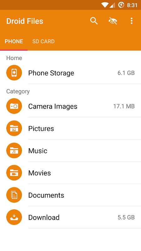 File Manager - Droid Files is probably the most lightweight file manager (less than 3MB) in Android Market. While keeping low resources consumption, File Manager - Droid Files doesn't compromise its features and capabilities. It allows you to browse, search, rename, copy, move and delete files/folders that stored in your local storage and SD card (will add cloud storage support in future).