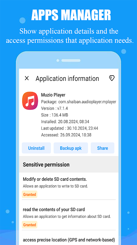 فائل مینیجر کے ساتھ، آپ اپنے آلے پر ایپس کا نظم بھی کر سکتے ہیں۔ آپ apk فائلوں کا بیک اپ اور بحال کر سکتے ہیں، اہم فائلوں اور فولڈرز تک تیزی سے رسائی کے لیے فوری فائل شارٹ کٹس بنا سکتے ہیں۔