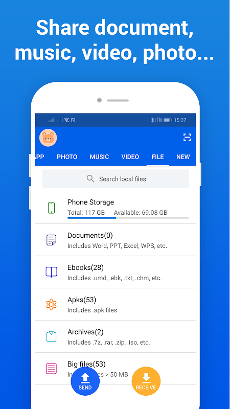 Instead of transferring files from one device to another using Bluetooth, you can now share files quickly and transfer files from computer to phone thanks to our share anywhere app. The application supports sharing all file types: applications, transfer photos, transfer music to another phone, videos, files.