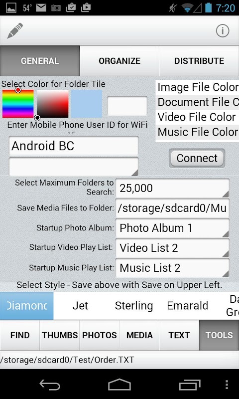 کنٹراسٹ، برائٹنس، بلر، ہیو، اور ایمبس، پنسل، پوسٹرائز وغیرہ کے طور پر اثرات کا استعمال کرتے ہوئے تصاویر میں ترمیم کی جا سکتی ہے۔ فائلوں کو فوٹو البمز اور پلے لسٹ کے ذریعے بھی ترتیب دیا جا سکتا ہے۔ آپ ایک سلائیڈ شو بنانے کے لیے میوزک ٹیب پر فوٹو البمز اور میوزک پلے لسٹ کو یکجا کر سکتے ہیں۔ عبوری اثرات اور ڈسپلے کے اوقات فی تصویر سیٹ کیے جا سکتے ہیں۔ ٹیکسٹ، ایکسل، ڈیٹا اسنیپ فائلز اور سورس ایچ ٹی ایم ایل دستاویزات کو دوسرے آلات کے ساتھ دکھایا اور شیئر کیا جا سکتا ہے۔