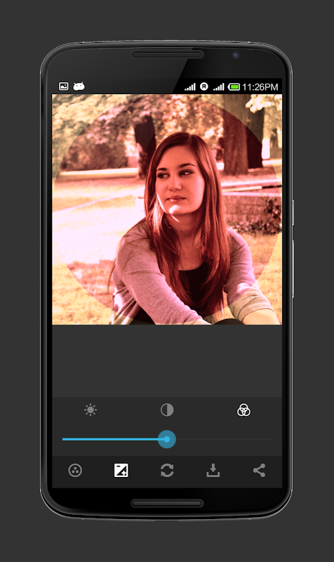 - Fine tune your image by changing its brightness, contrast and saturation levels.