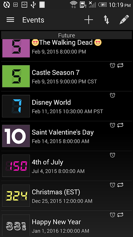 ✔ Customize recurring countdowns, pick days of the week, biweekly and many more