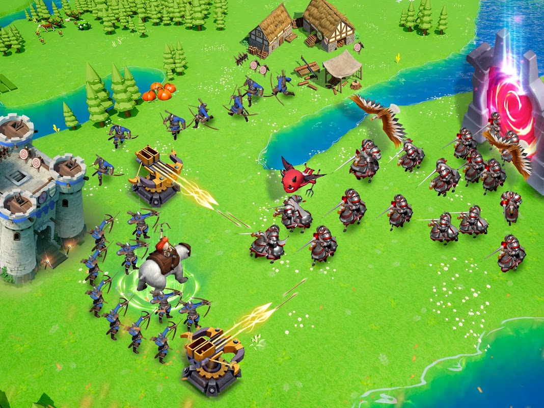 دنیا کے نقشے پر، آر ٹی ایس (ریئل ٹائم اسٹریٹیجی) کی لڑائیاں شروع کریں، اسٹریٹجک ترتیب کے لیے ہر وسیع خطہ کی منفرد خطوں کی خصوصیات کا فائدہ اٹھاتے ہوئے۔ وسائل پر قبضہ کریں، لاتعداد کھلاڑیوں کے ساتھ حقیقی وقت کی لڑائی میں مشغول ہوں، اور میدان جنگ پر غلبہ حاصل کریں!