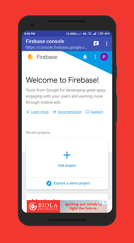 Firebase console lite App(2MB).Use Firebase app to access your Firebase console