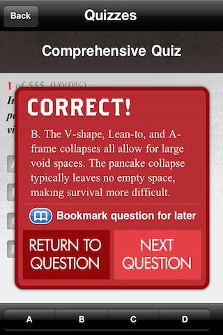 مواد 2011 NFPA اور IFSTA کی نصابی کتابوں کے ساتھ تیار اور تصدیق شدہ ہے۔ 550 سے زیادہ پریکٹس امتحان کے کوئز سوالات اور 700 فلیش کارڈز دستیاب ہیں۔