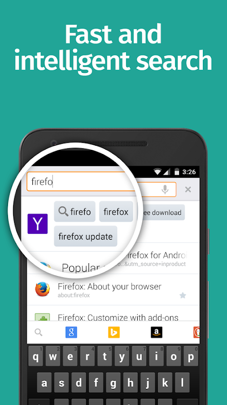 - Firefox Web Browser anticipates your needs and intuitively provides multiple suggested and previously searched results across your favorite search engines - every time.