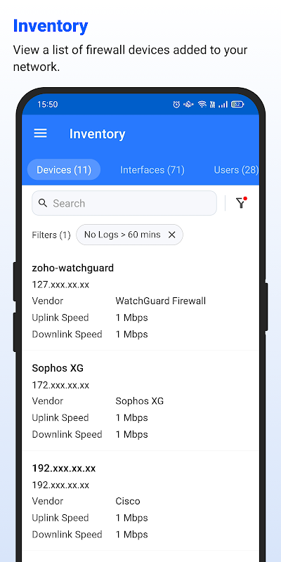 ایپ آپ کو چلتے پھرتے فائر وال اور کور نیٹ ورک سیکیورٹی ڈیوائس تک فوری رسائی فراہم کرتی ہے۔