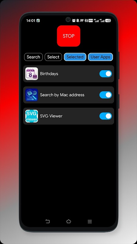 ایپ صرف کچھ ایپس کو انٹرنیٹ تک رسائی کی اجازت دیتی ہے، یا یہ کسی کو بھی انٹرنیٹ تک رسائی کی اجازت نہیں دیتی ہے۔ اسے ترتیب دینا بہت آسان ہے: ایپ کے آگے ایک سوئچ ہے، اور اگر یہ آن ہے، تو ایپ کو انٹرنیٹ تک رسائی حاصل ہے۔ اگر یہ بند ہے، یہ نہیں کرتا.