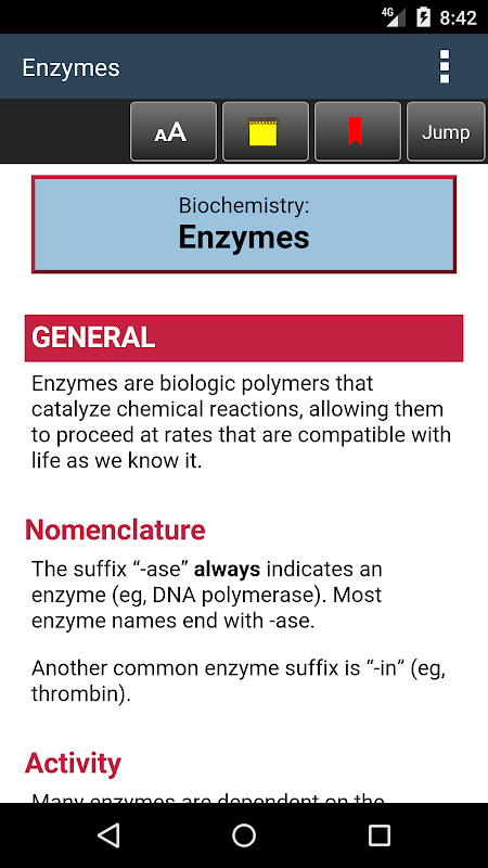This app is easy to navigate, allowing you to browse the contents or search the text. The powerful search engine allows you to find what you are looking for instantly. The search tool also shows you suggestions as you type so it is quick and helps with spelling medical terms. You can create bookmarks and notes, allowing you to learn and memorize the material with great speed and efficiency. You can also change the text size for easier reading.